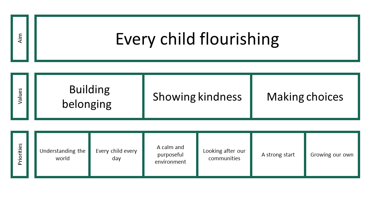 Our value of show kindness relates to every interaction and decision children and adults make each date. Kindness should be the default action in every situation.